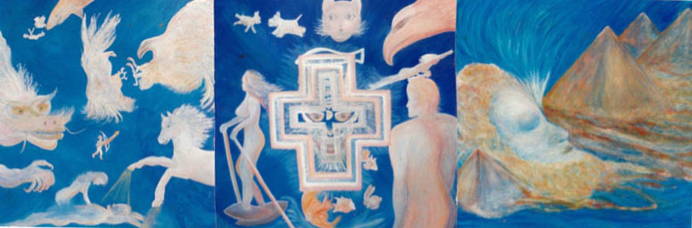 The following Cloud Story Trilogy, consisting of both paintings and interpretations, were actually seen, via extremely vivid and lifelike cloud vignettes, by the artist, who believes that both the “Cloud Story” paintings, and their threefold prophetic message: that good verses evil is real struggle on this planet, we are not alone in the Universe and that we can only find everlasting life in Heaven through Jesus Christ. These messages are messianic gifts to humankind from a loving God.